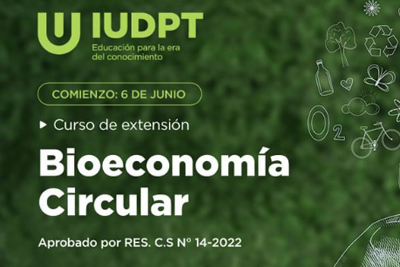 El Instituto Universitario para el Desarrollo Productivo y Tecnológico Empresarial de la Argentina (IUDPT) organiza el Curso de Extensión Universitaria sobre Bioeconomía Circular, con el auspicio de la Cámara de Instituciones de Diagnóstico Médico (CADIME) y de la Fundación Instituto para el Desarrollo Productivo y Tecnológico Empresarial de la Argentina (Fundación DPT). El curso se impartirá entre el 6 y el 17 de Junio.